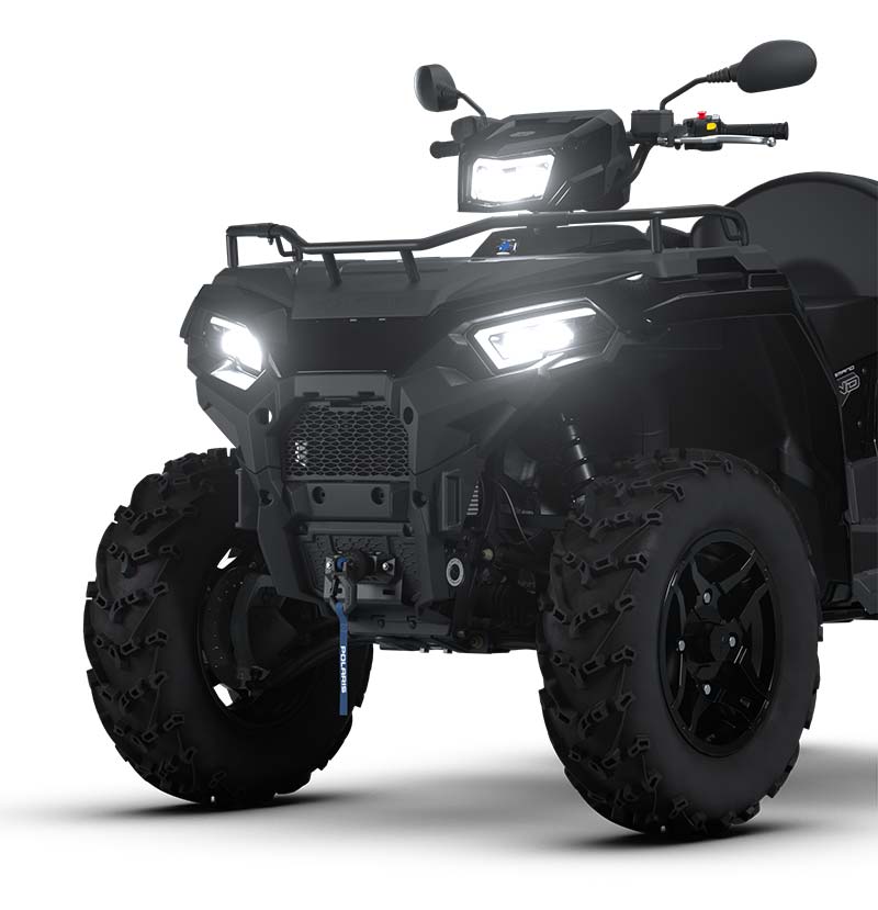 3 Fahrmodi: Standard / Arbeit / Performance, 12-Volt-Steckdose, Ladeanschluss im Pod, Griff- und Daumenheizung inklusive, DEFA-Motorvorwärmer, PIN-aktiviertes Sicherheitssystem (P.A.S.S.), 1.588-kg-Winde mit Kunststoffseil und NEUEM Auto-Stop, Frontgepäckträger-Erweiterung, Kippbox, Querlenkerschutz vorne und hinten, lackierte Kunststoffteile